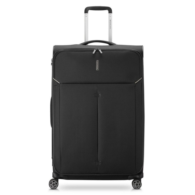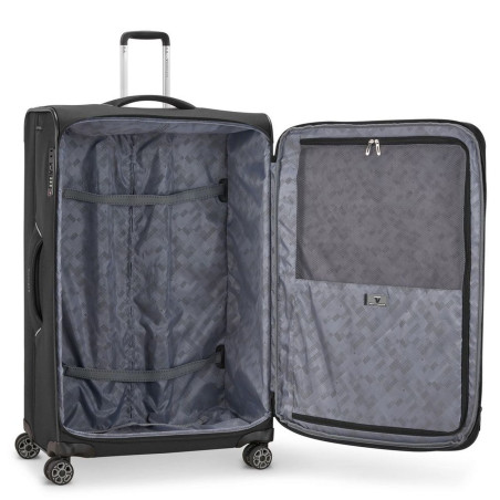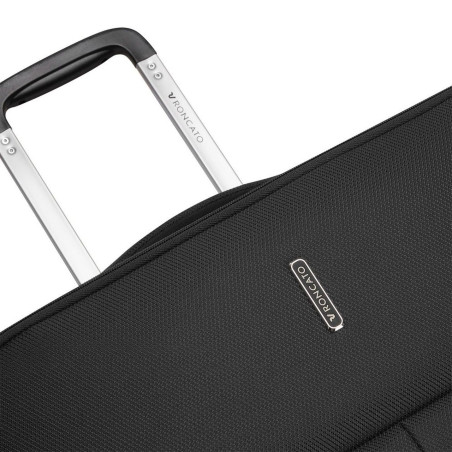 Velik kovček Roncato Ironik Velik kovček Roncato Ironik je idealna izbira za daljša potovanja. Z dimenzijami 75x48x30/35 cm in razširljivo funkcijo ponuja obilico prostora za vso vašo prtljago. Kovček je izdelan iz visokokakovostnega materiala, ki zagotavlja dolgotrajno vzdržljivost in odpornost na obrabo. Prilagodljiv in funkcionalen Kovček ima štiri vrtljiva kolesa, ki omogočajo enostavno manevriranje na vseh površinah. Ergonomsko oblikovan ročaj pa zagotavlja udobno vlečenje kovčka. Njegova mehka struktura omogoča prilagodljivost pri pakiranju, medtem ko dodatni zunanji in notranji žepi zagotavljajo prostor za manjše predmete. Varnost in zaščita Za varnost vaše prtljage je poskrbljeno z vgrajeno TSA ključavnico, ki omogoča brezskrbno potovanje v ZDA in drugod. Kovček ima tudi razširljivo funkcijo, ki omogoča povečanje prostornine, tako da lahko vanj spravite vse, kar potrebujete.